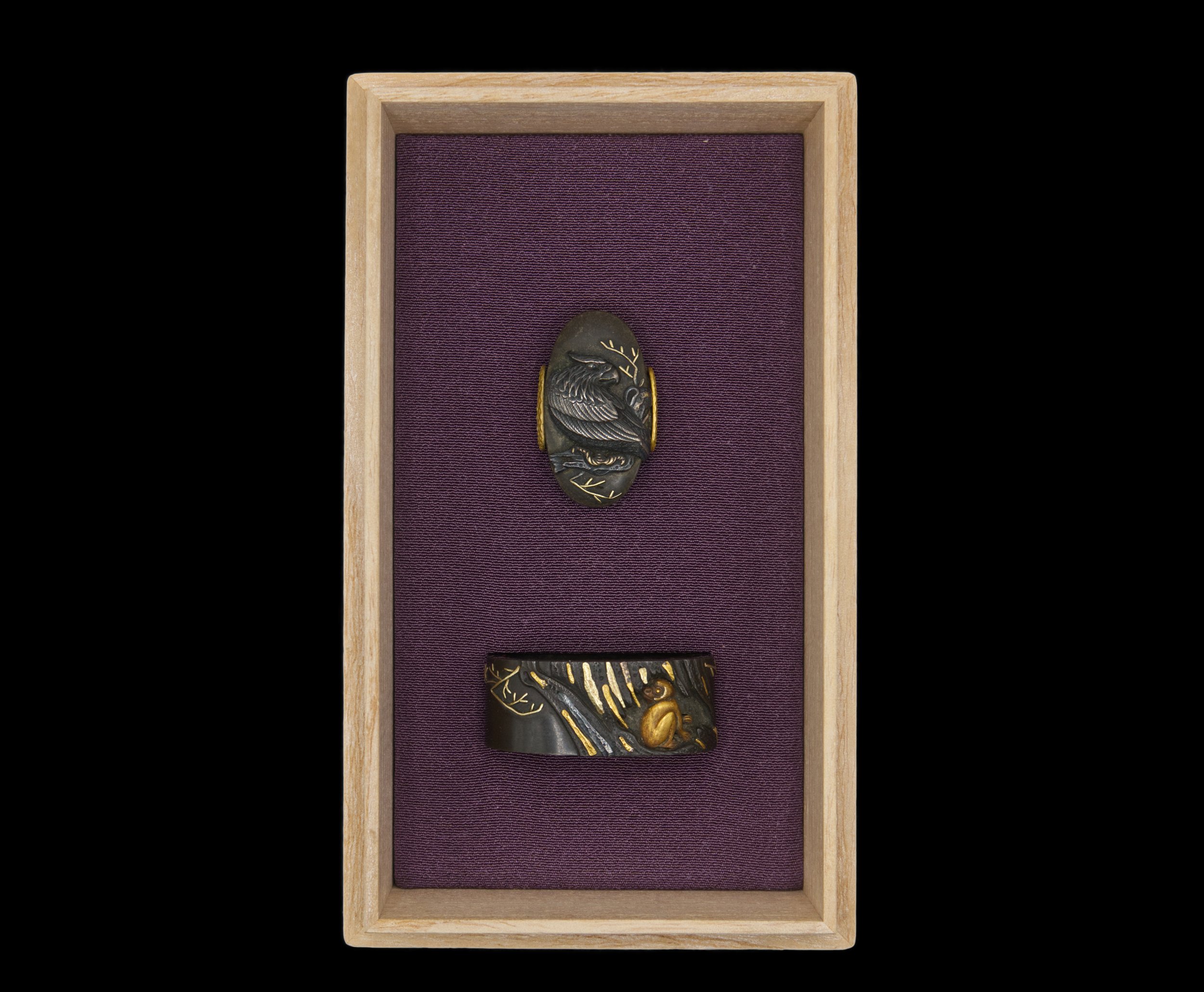 Fierce Eagle and Monkey Design Fuchi Kashira 猛禽隠猿図縁頭